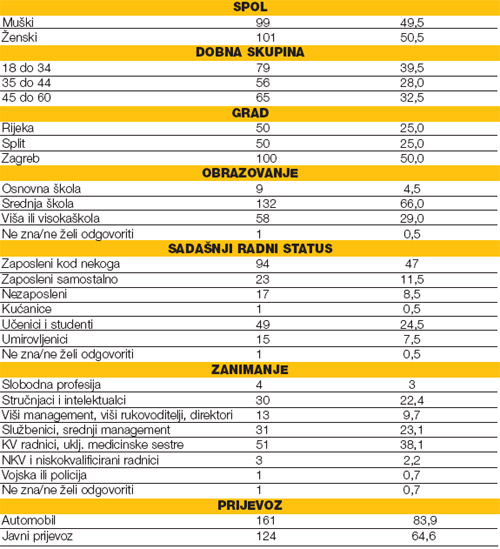 Die Forschung umfasste 200 Befragten. Merkmale der Testgruppe sind in der Tabelle angeführt.